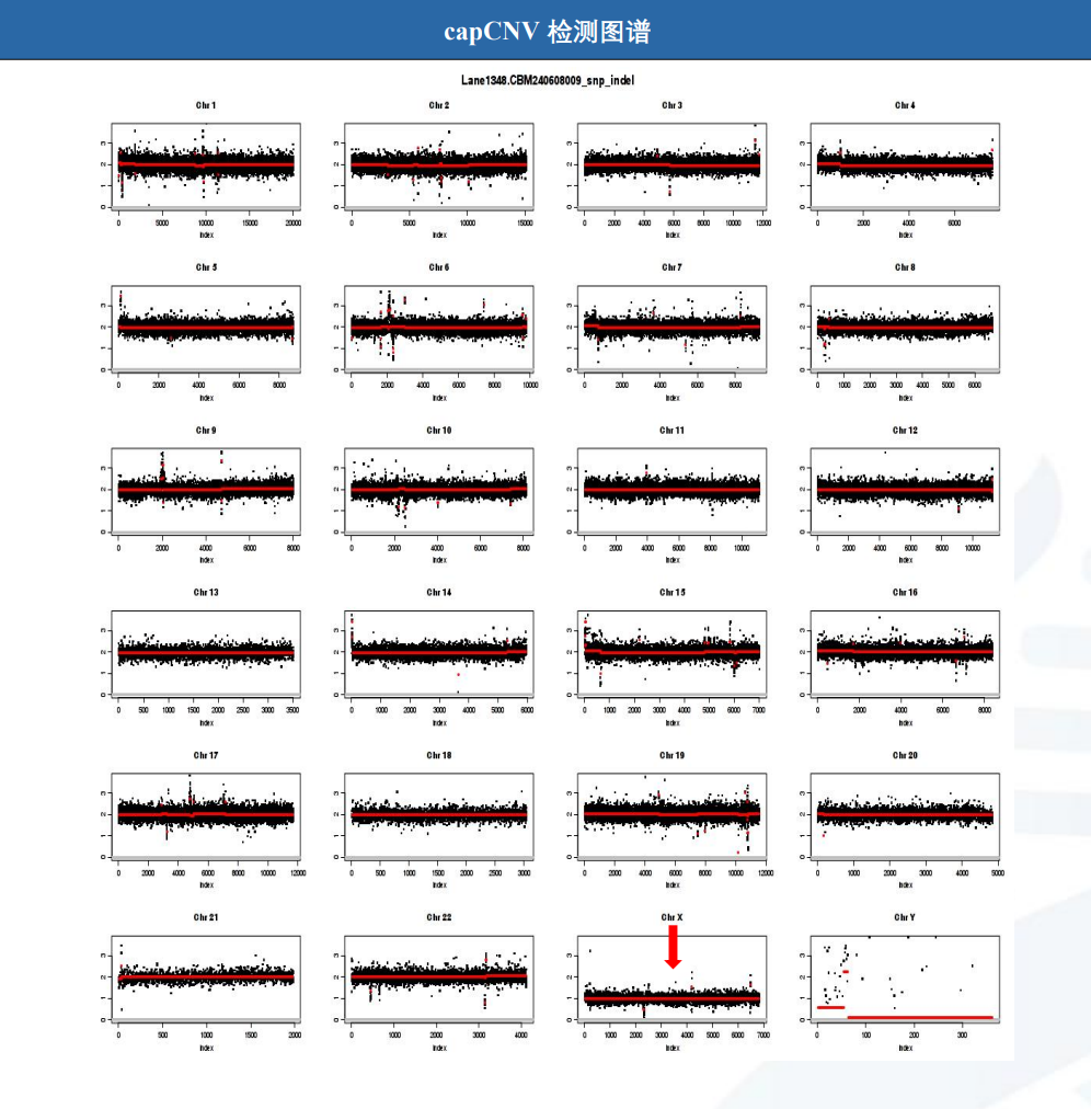 图4.capCNV检测图谱(整条X染色体拷贝数异常)